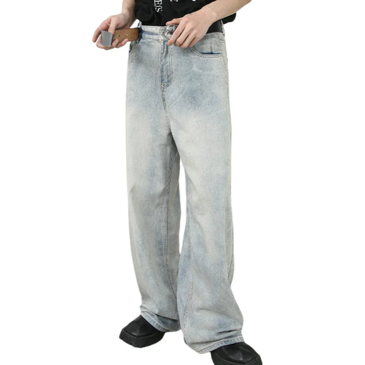 Retro Light Blue Men's Casual Wide Leg Jeans Vintage American High Street Sle Loose Straight Cut Denim Trousers for Teens