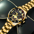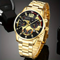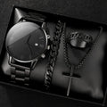 4pcs Luxury Men Business Quartz Watch Gold Alloy Roman with Calendar Wrist Watch Cross Necklace Bracelet Ring Set Men's Gift