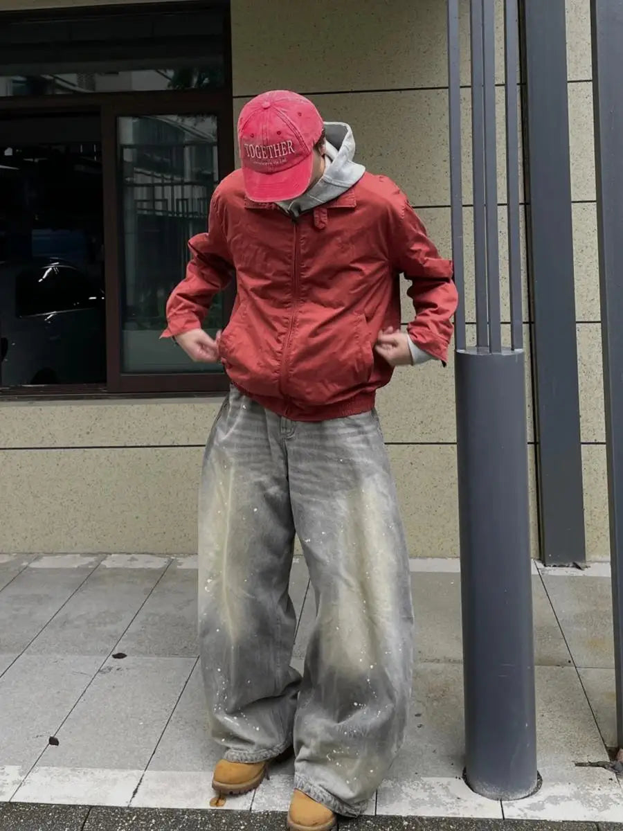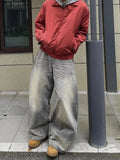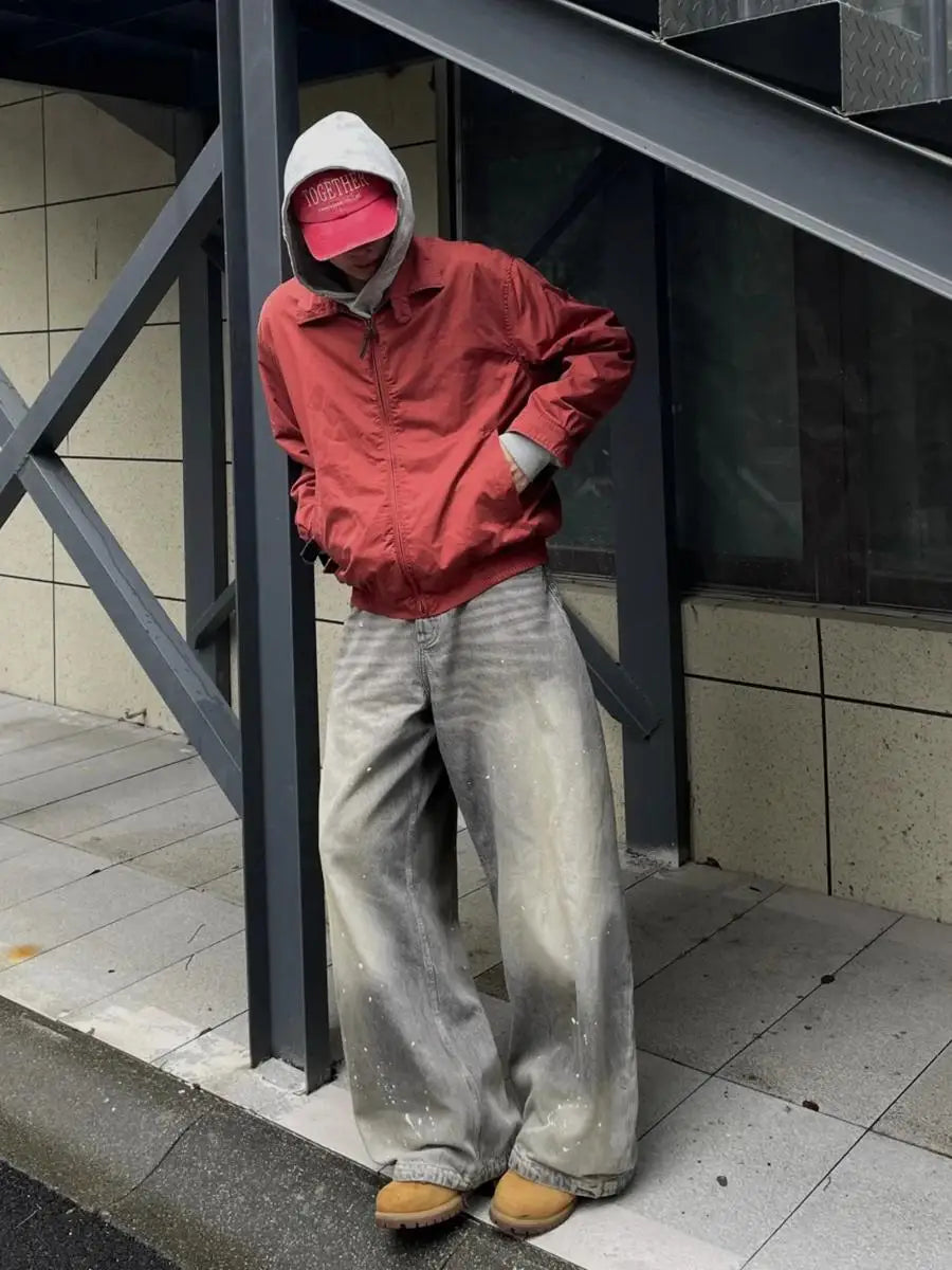 American High Street Retro Splaed Ink Design Knife Jeans Men Loose Wide Leg Versatile Casual Drapey Long Pants