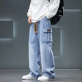 Autumn New Wide Leg Washing Jean Pants Men Trousers Neutral Solid Color Loose Casual Fashion Pocket Cargo Pants Big Size 8xl