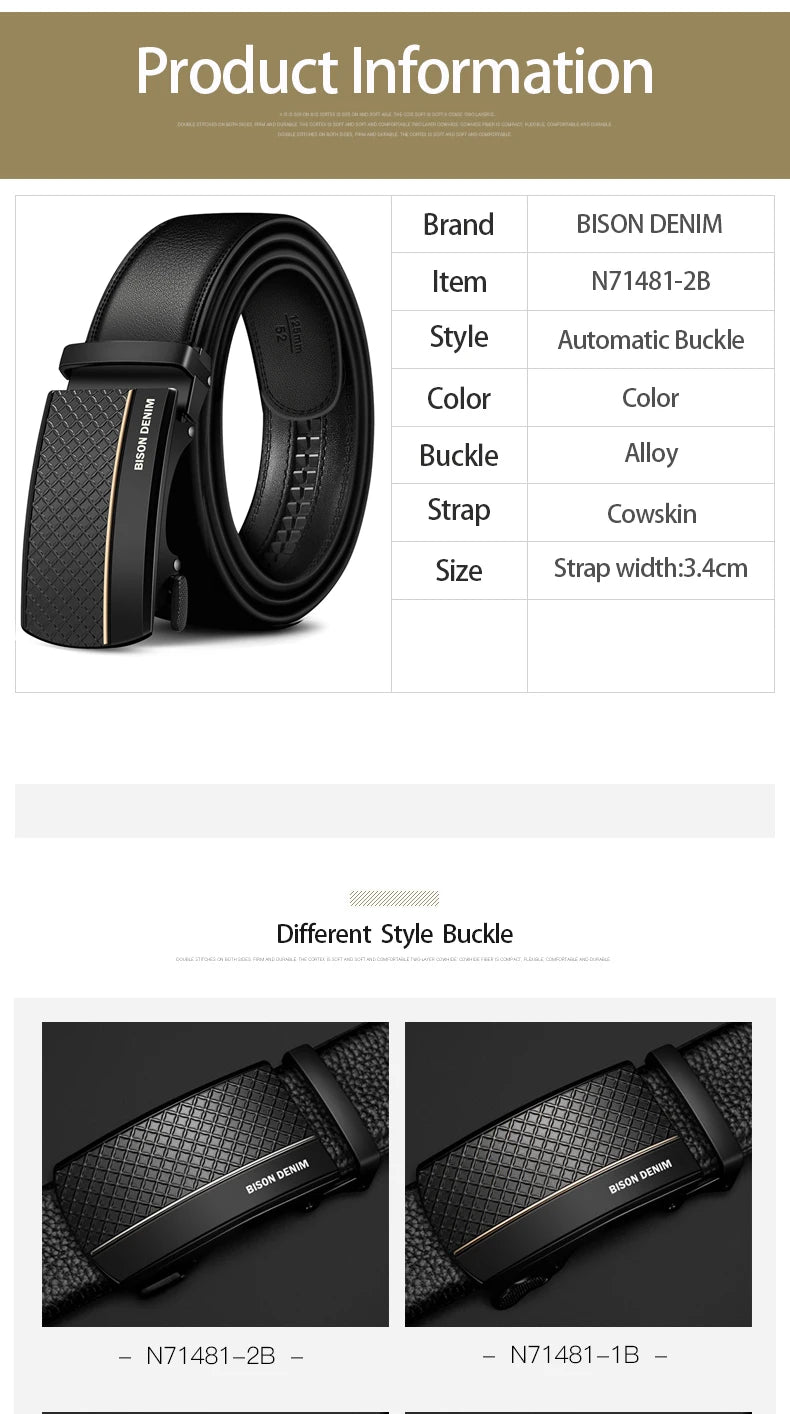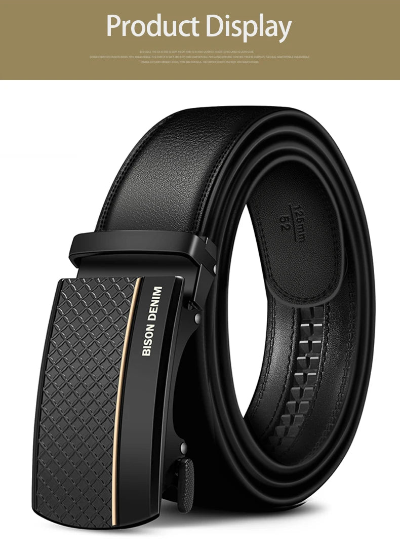 BISON DENIM Genuine Leather Automatic Men Belt Luxury Strap Belt for Men Designer Belts Men High Quality Fashion Belt N71416