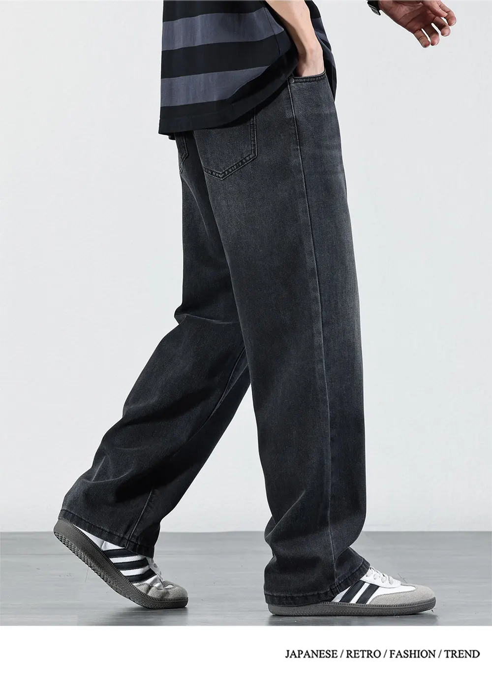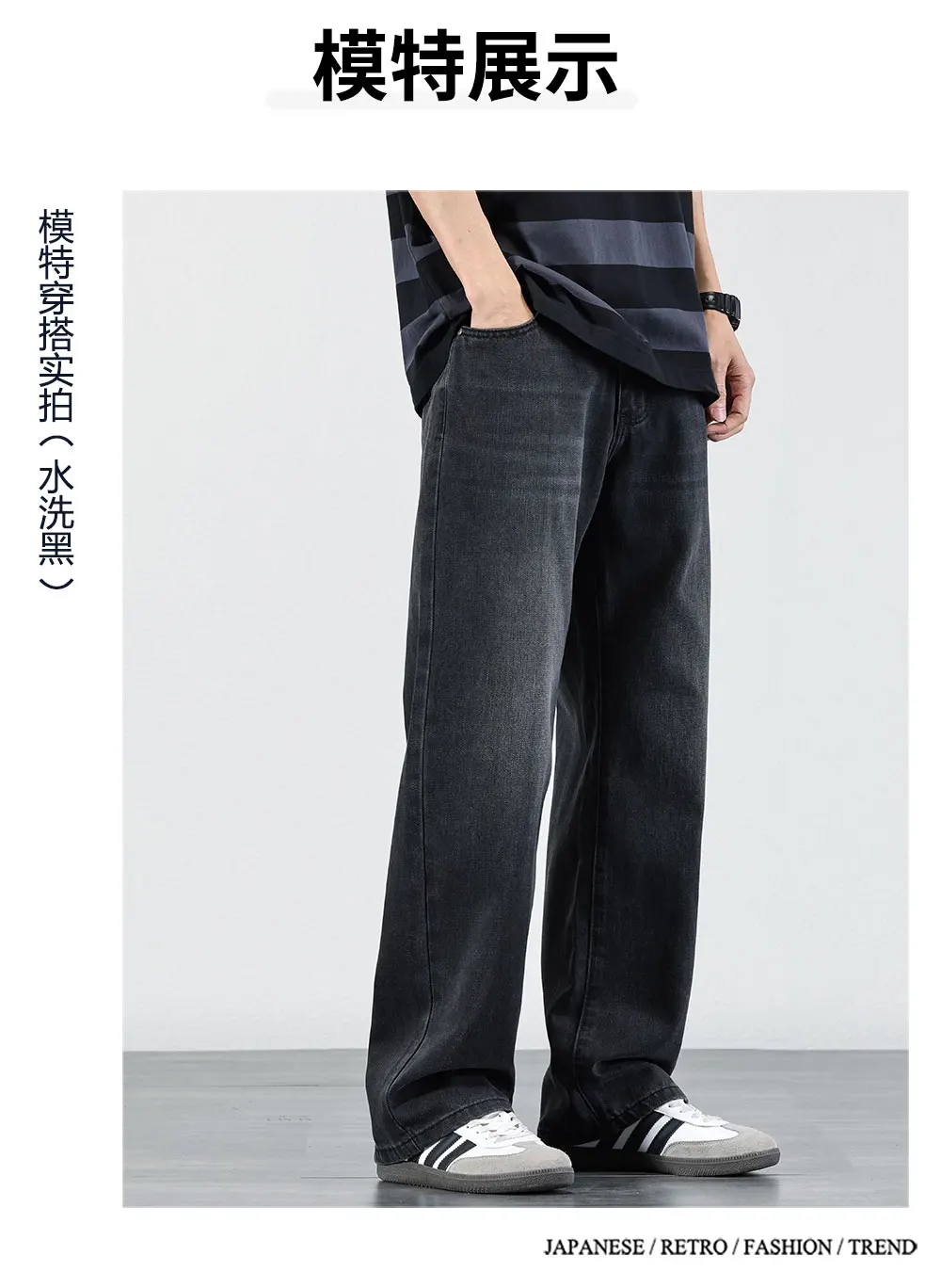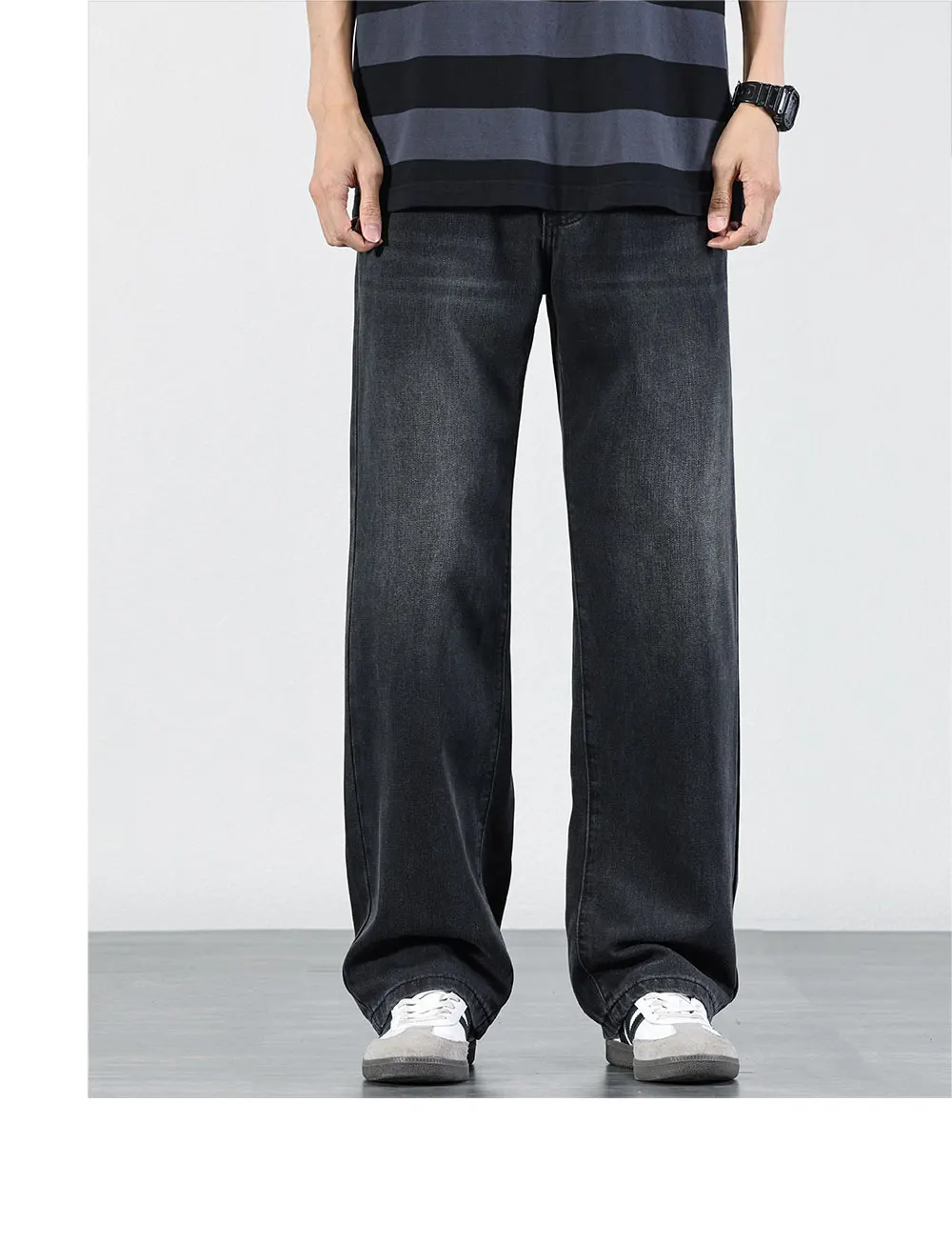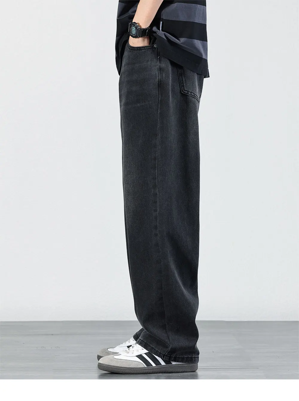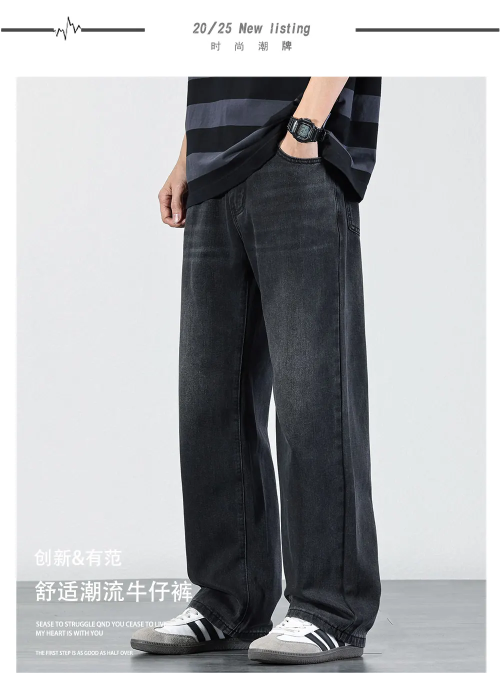 Blue and Black Jeans, Men's Thin Autumn and Winter Trousers, Loose Straight Wide-leg Casual Trousers, Trendy