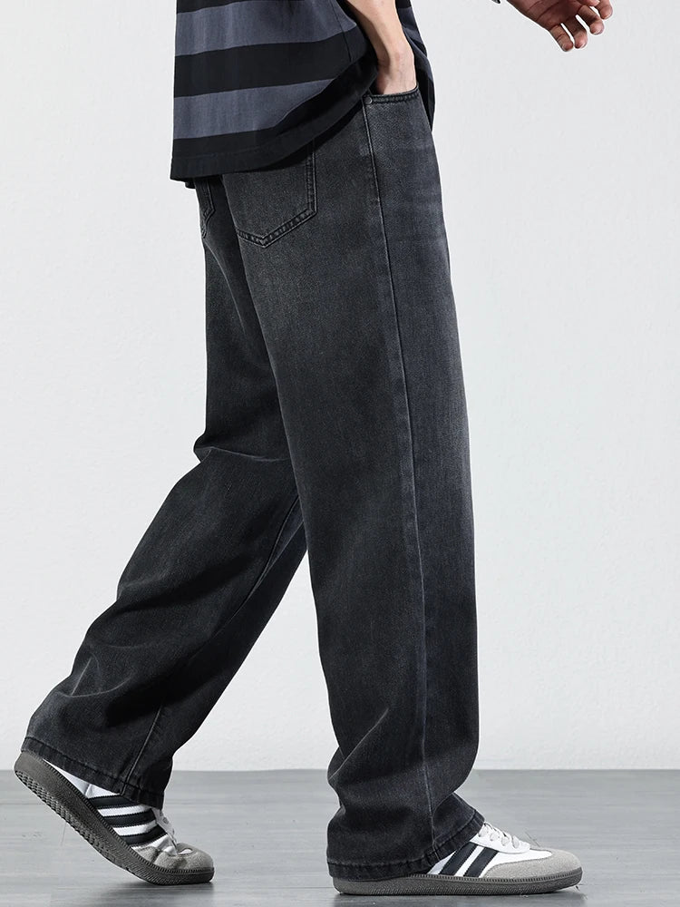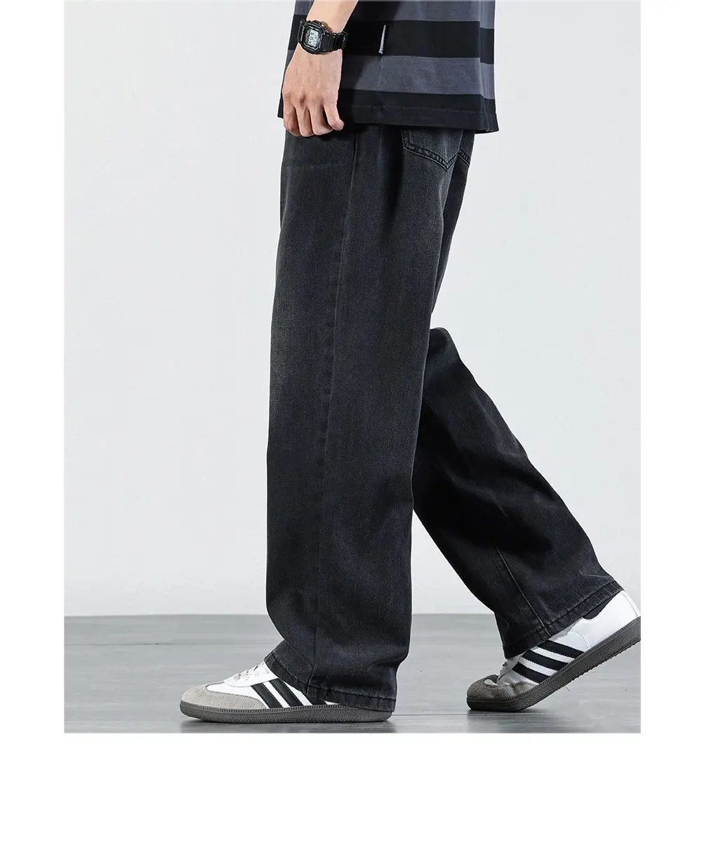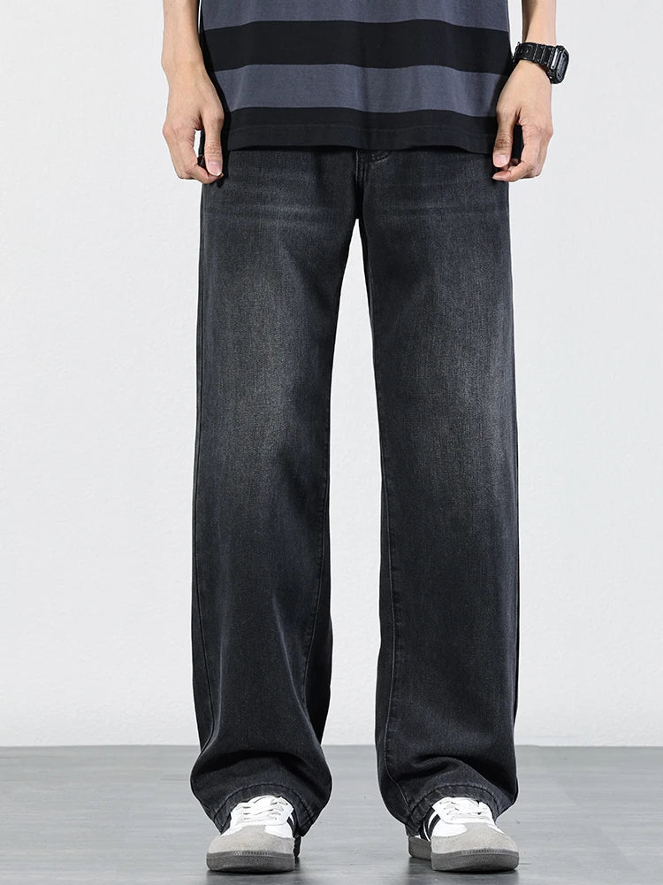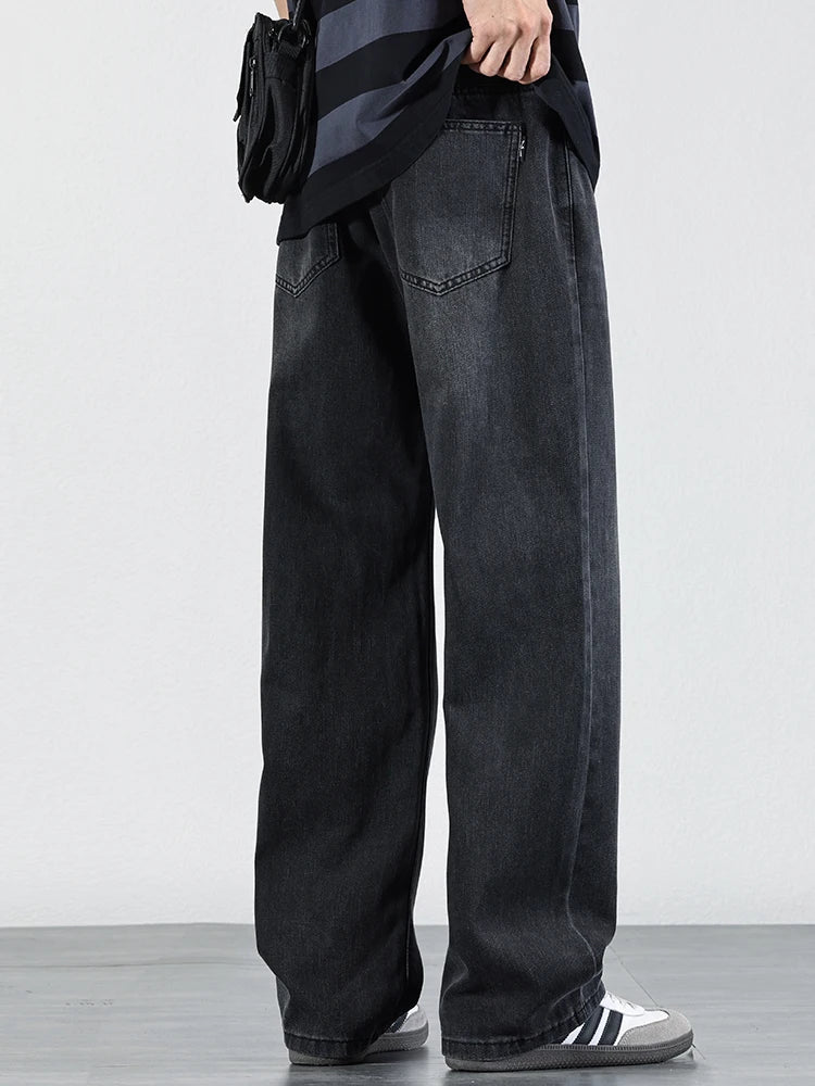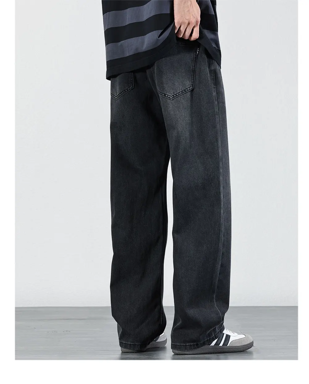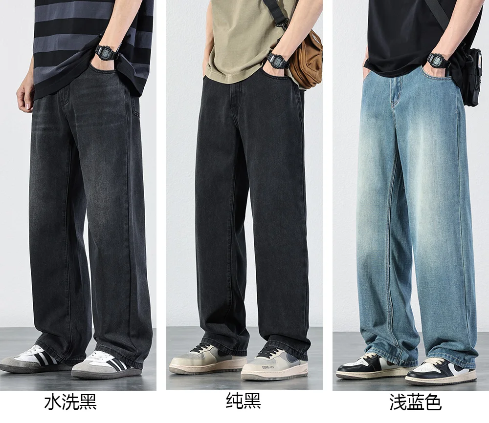 Blue and Black Jeans, Men's Thin Autumn and Winter Trousers, Loose Straight Wide-leg Casual Trousers, Trendy