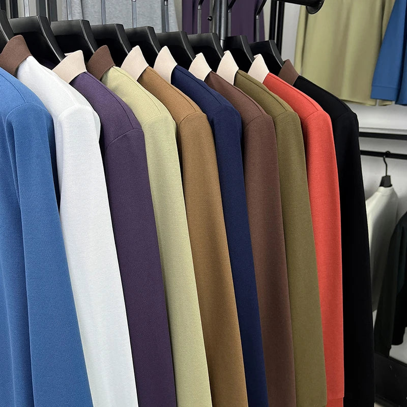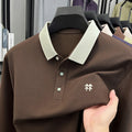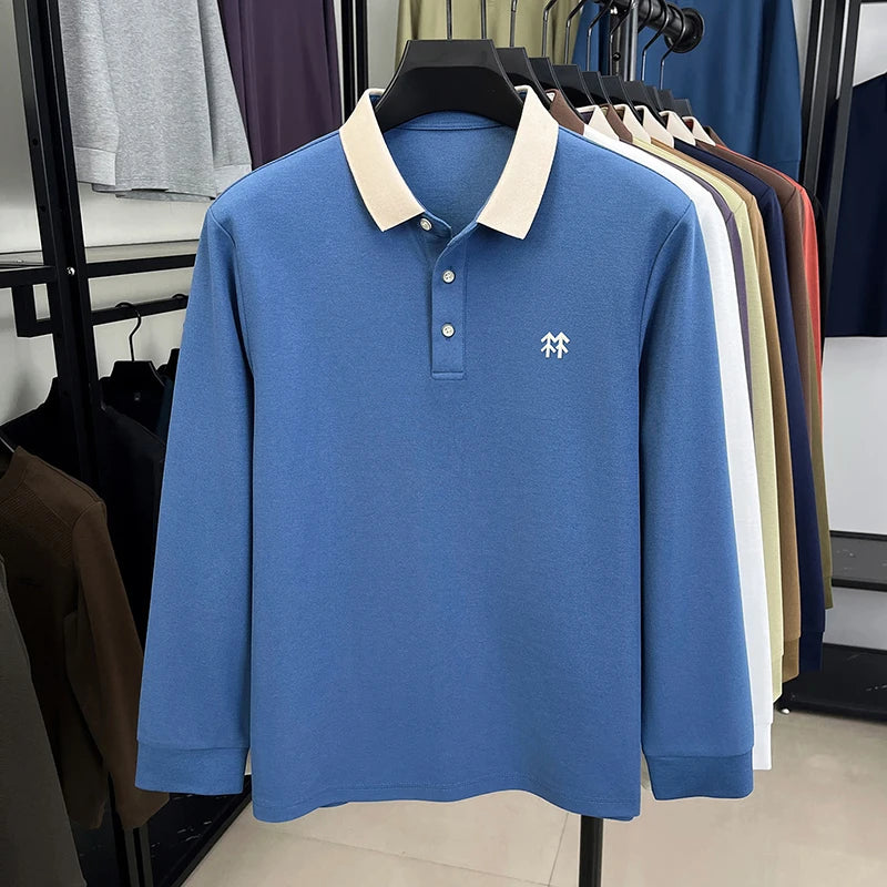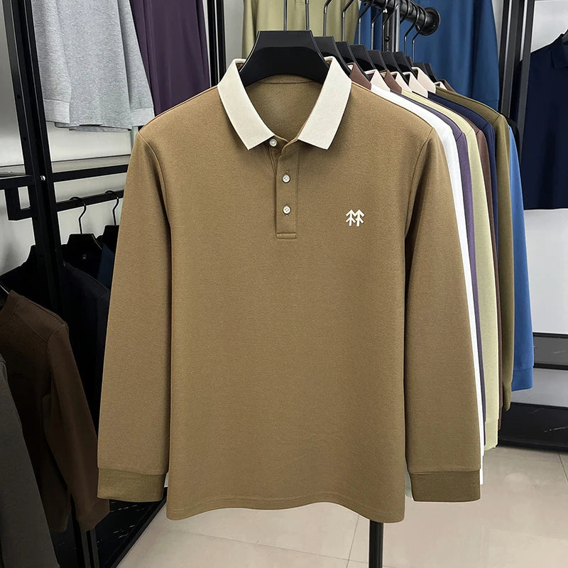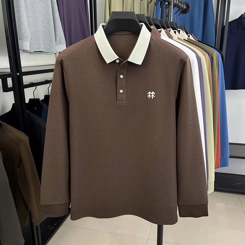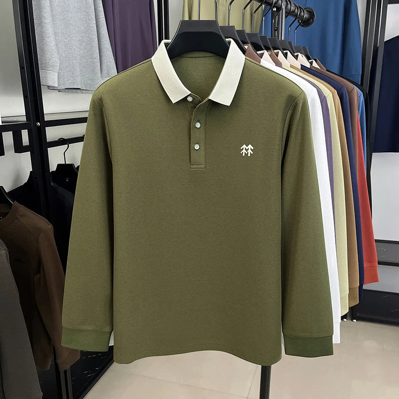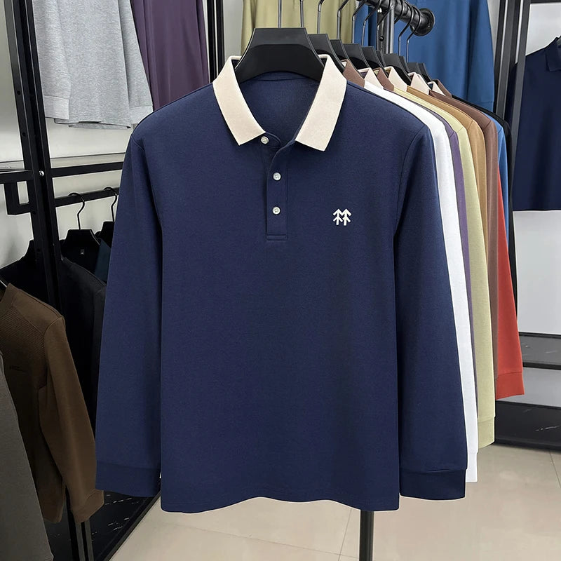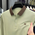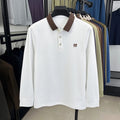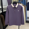 Fashion luxury brand long sleeve polo shirt men's autumn new trend badge embossed design Korean casual silk cotton lapel T-shirt