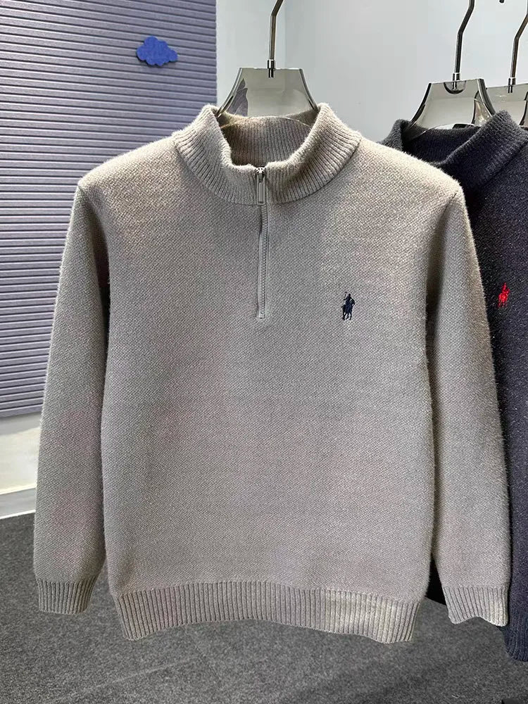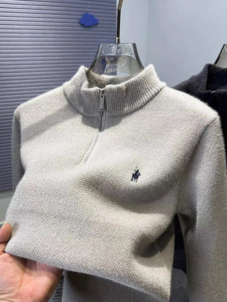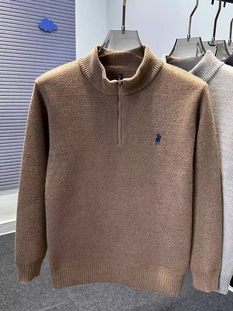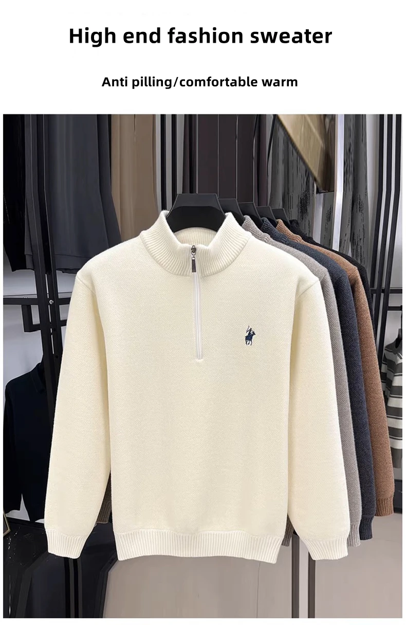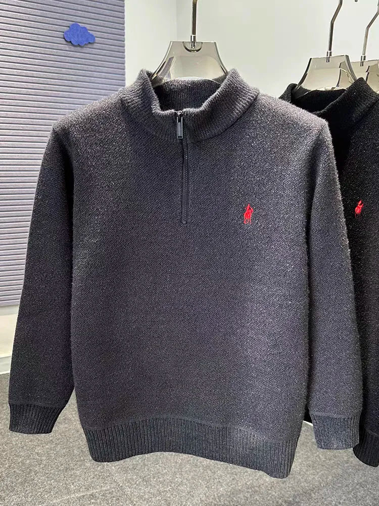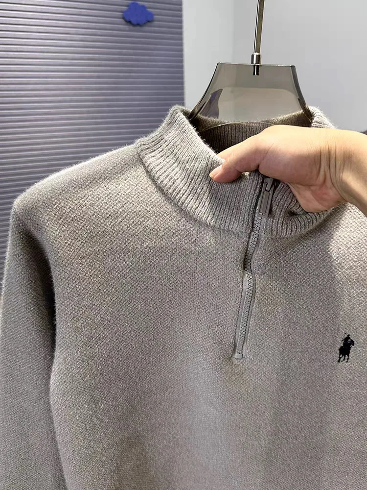 High end half zipper stand up collar knitted sweater men winter new thick warmth fashion designer brand pony embroidery pullover