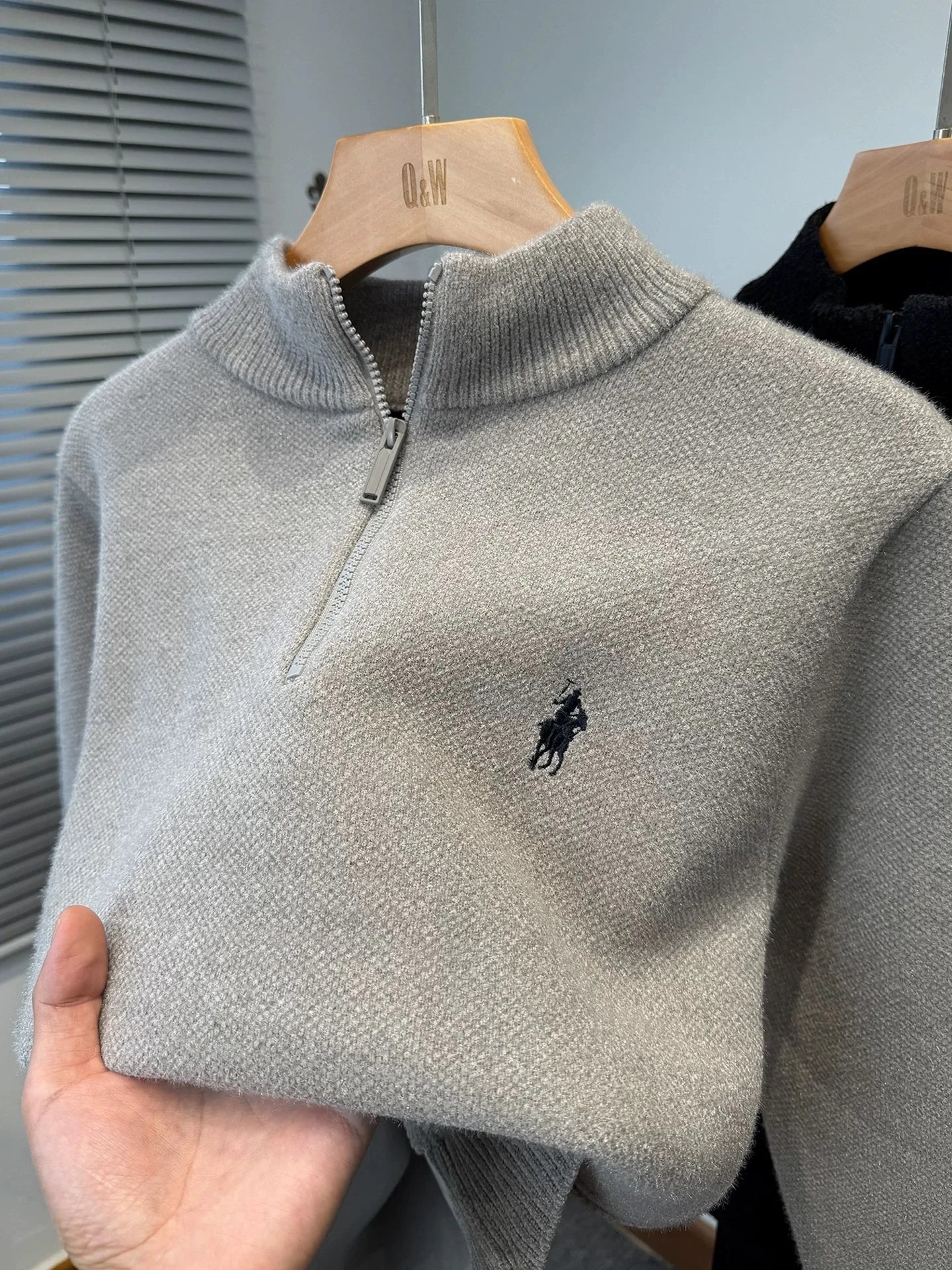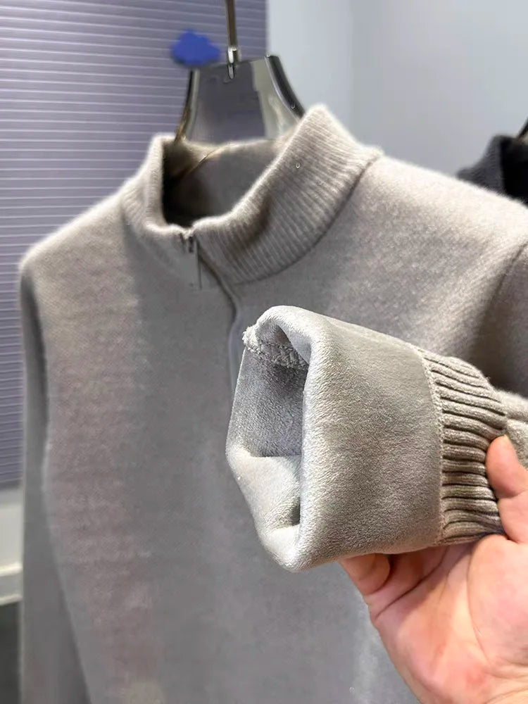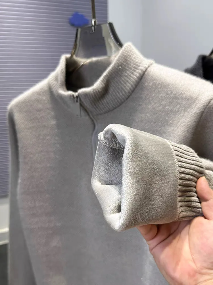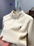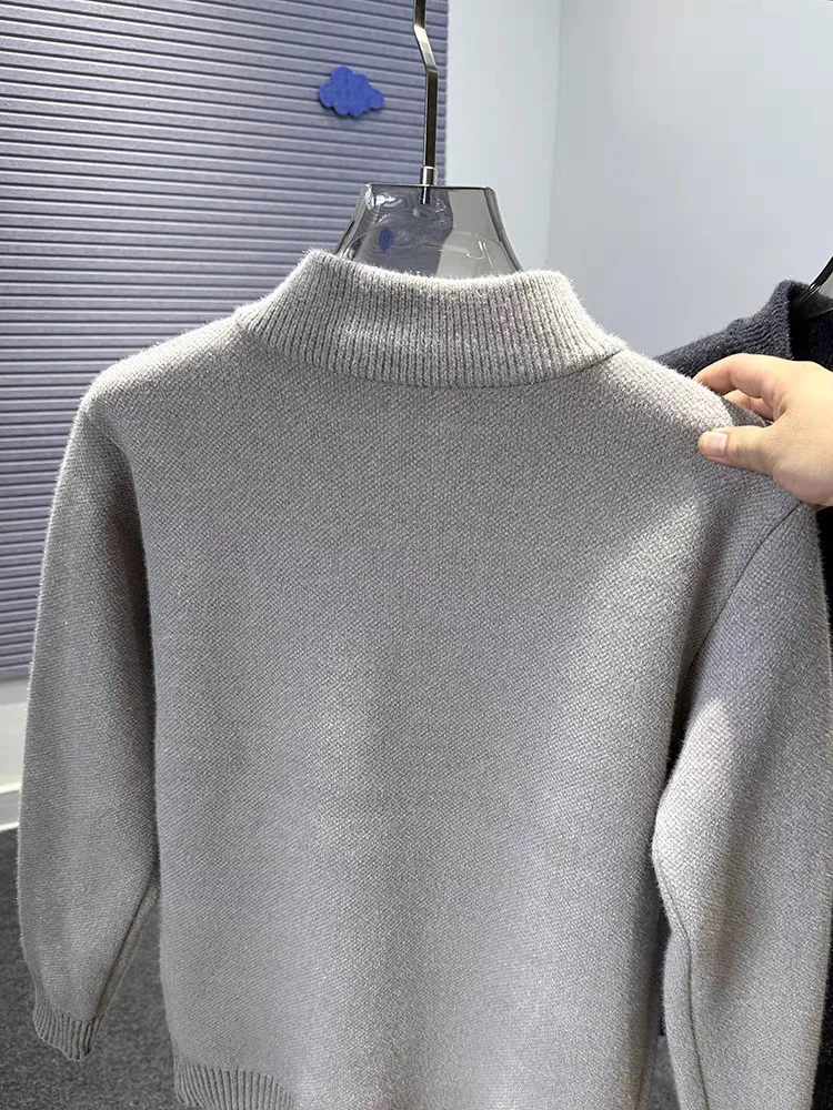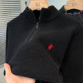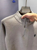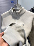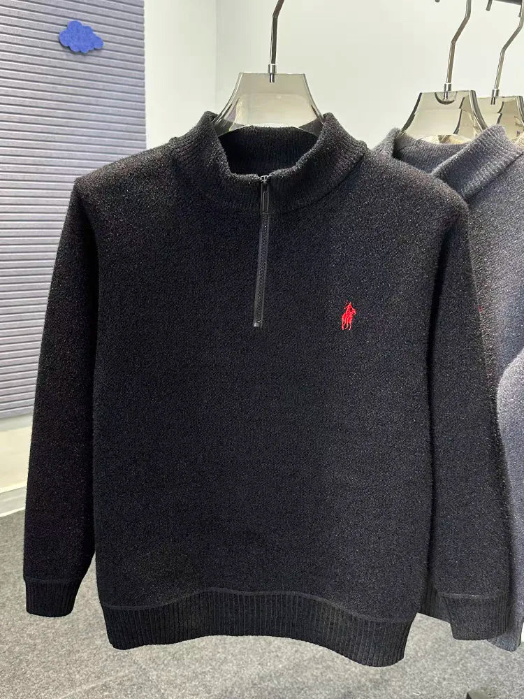 High end half zipper stand up collar knitted sweater men winter new thick warmth fashion designer brand pony embroidery pullover