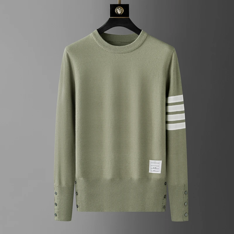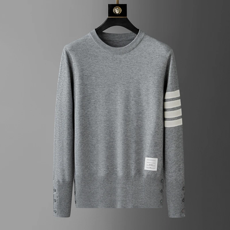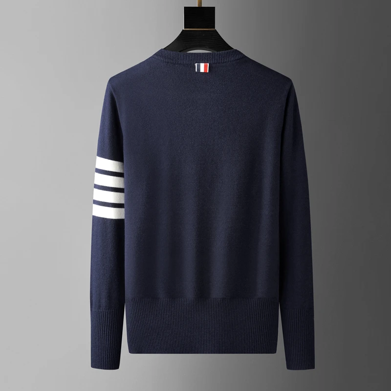 High end luxury brand sweater men personality trend ribbon striped round neck Knitwear autumn and winter Korean casual pullover