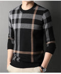 High end luxury pullover men autumn winter designer brand round neck striped wool sweater European fashion casual warm knitwear
