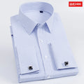 Men's French cufflinks shirt, men's slim fit long sleeved business sleeve nail free business formal men's solid color shirt