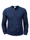 Mens Long Sleeve Henley Neck T-shirt Slim Fit Bottoming Tshirt Casual Button Shirt Comfortable Fitness Tee Cozy Top
